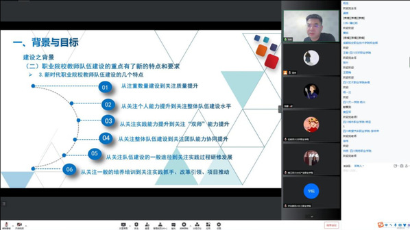 5月21日,2021四川省职业教育教师教学创新团队建设项目在我校开班。全国职教师资培训重点建设基地管理办公室副主任陈瑞燕,江苏理工学院计算机工程学院党委书记张玉娟,计算机工程学院培训中心主任高伟,项目班主任、项目工作人员以及来自四川省多所高等职业院校的195名教师参加了线上开班典礼。