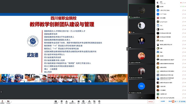随后由四川工程职业技术学院武友德教授做了《四川省职业教育教师教学创新团队建设与管理政策解读》专题讲座。武友德以教师教学创新团队建设的目标与任务、内容与形式、流程与形式、各方职责与分工、绩效考核评价为提纲,对四川省职业教育教师教学创新团队建设作了具体阐释。
