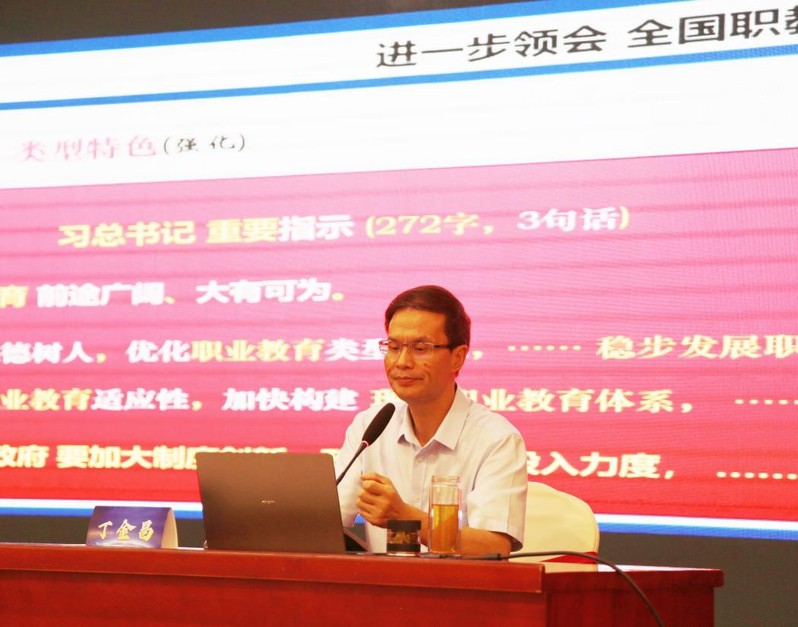 开班典礼后,中国职业技术教育学会副会长、中国职教学会高职分会会长,丁金昌教授为学员做了《优化职业教育类型定位——推进课程建设与教学模式改革的思考》的主题讲座。在报告中,他以生动的语言,为学员们讲授了当代职业教育改革发展的现状,学员们表示深受启发。(文/图:孙建波,审核:臧志军)