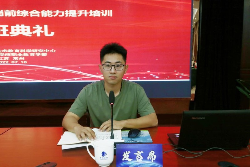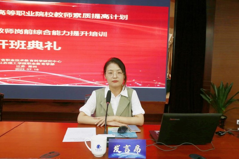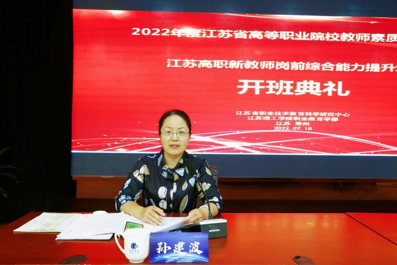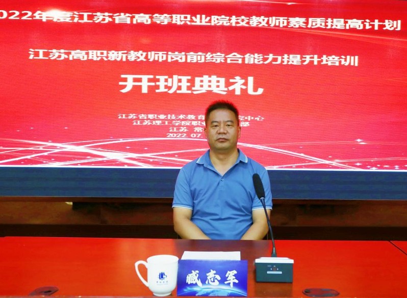 2022年7月18日上午,由江苏理工学院承办的“2022年度江苏高职新教师岗前综合能力提升”培训班开班典礼在常瑞宾馆举行。江苏理工学院职业教育学部副主任、炎培学院院长臧志军教授,培训班班主任孙建波副研究员以及来自全省各高职院校的70名学员参加了开班典礼。开班典礼由孙建波主持。