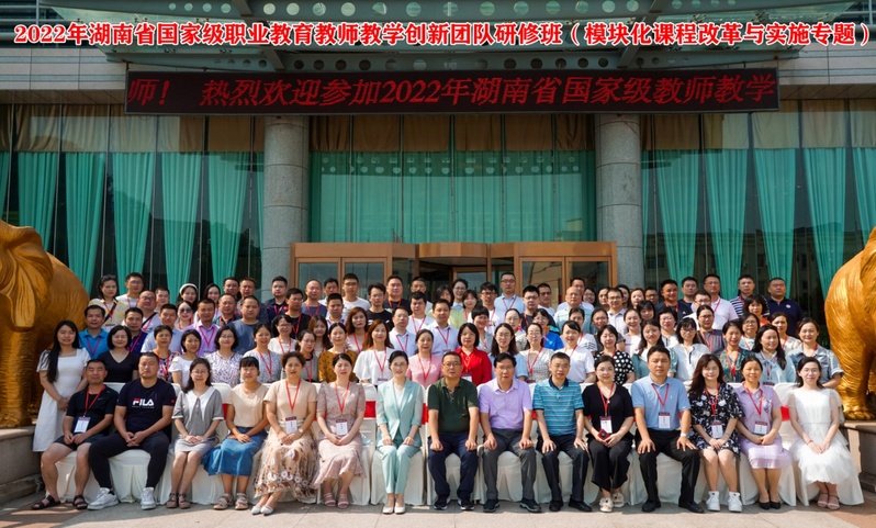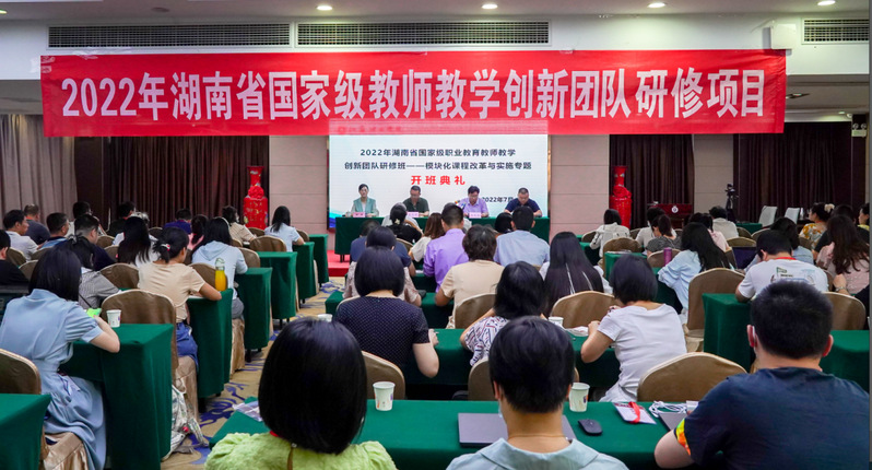 2022年7月26日上午,湖南省国家级教师教学创新团队研修模块化课程改革与实施专题项目培训在我校举行,校党委常委、副校长贝绍轶,继续教育学院院长、全国职教师资培训重点建设基地办公室主任陈胜权,计算机工程学院党委书记谢芳,项目负责人、班主任及100名湖南省国家级教师教学创新团队的负责人和骨干教师参加了开班仪式。开班仪式由谢芳主持。