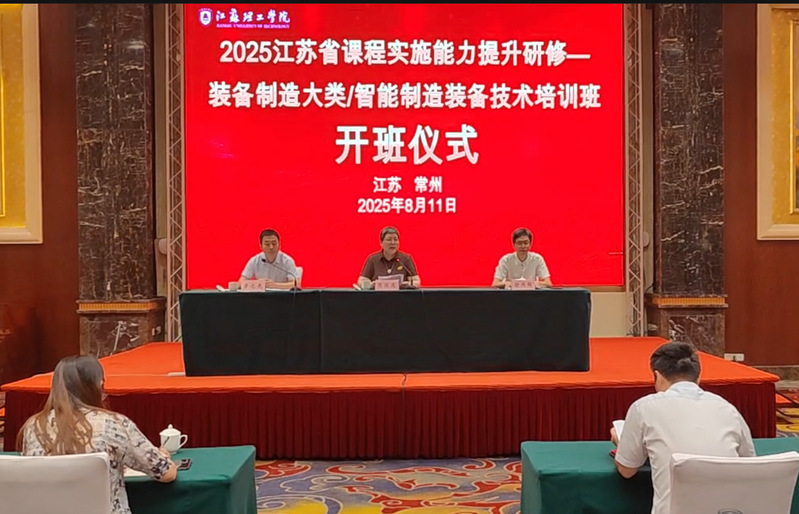 2025年8月11日上午,由江苏理工学院机械工程学院承办的2025年江苏省高职课程实施能力提升装备制造大类智能制造装备技术培训班开班典礼在明都大饭店阳光厅举行。江苏理工学院教学质量监控与评估处处长徐鸿翔、全国重点建设职教师资培训基地办公室副主任陈瑞燕以及机械工程学院副院长曹忠亮及来自江苏省高等职业院校的40位装备制造类专业骨干教师参加了开班典礼。开班典礼由机械工程学院副院长曹忠亮主持。