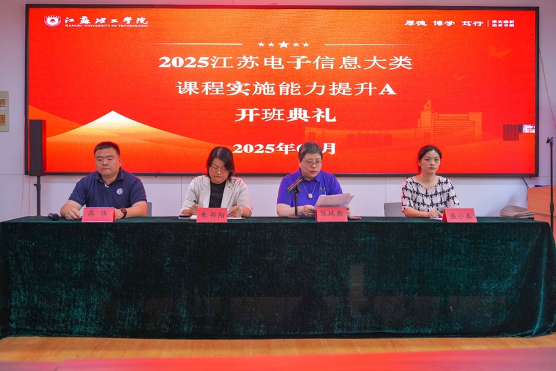 2025年8月19日上午,2025江苏高职电子与信息大类教师课程实施能力提升A-国培在我校举行。全国重点建设职教师资培训基地办公室副主任陈瑞燕,计算机工程学院党委书记朱书阳,计算机工程学院培训与职业教育中心主任、项目负责人高伟,班主任盛小春以及江苏高职的骨干教师参加了开班典礼。开班仪式由高伟主持。