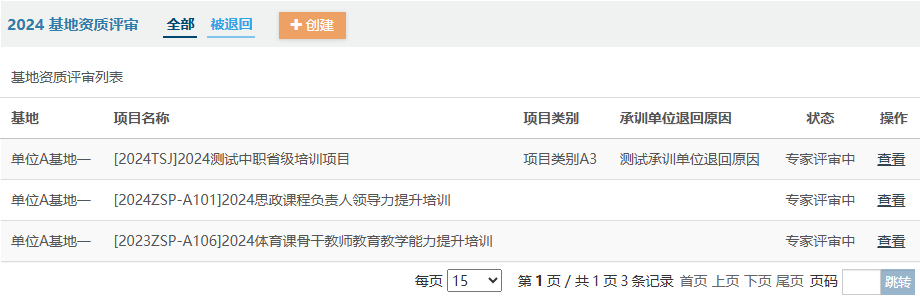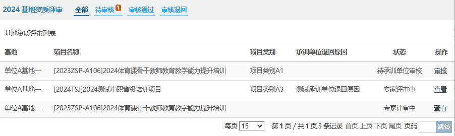 3)承训单位审核通过:审核通过,可进入下一步专家评审