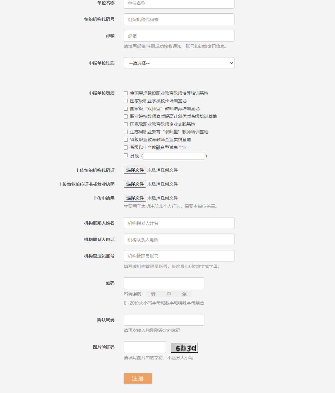 正确填写各项信息,点击“注册”按钮,即可提交注册信息。确保填写正确的邮箱,邮箱用于接收审核结果。