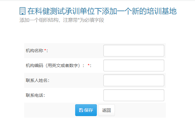输入培训基地各项信息,点击“保存”按钮,即可添加一个新在的培训基地机构信息。